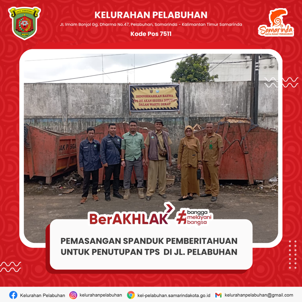 Sebagai bagian dari upaya penataan sistem pengelolaan sampah dan peningkatan kualitas lingkungan, telah dilakukan pemasangan spanduk pemberitahuan penutupan Tempat Pembuangan Sementara (TPS) yang berlokasi di Jl. Pelabuhan.