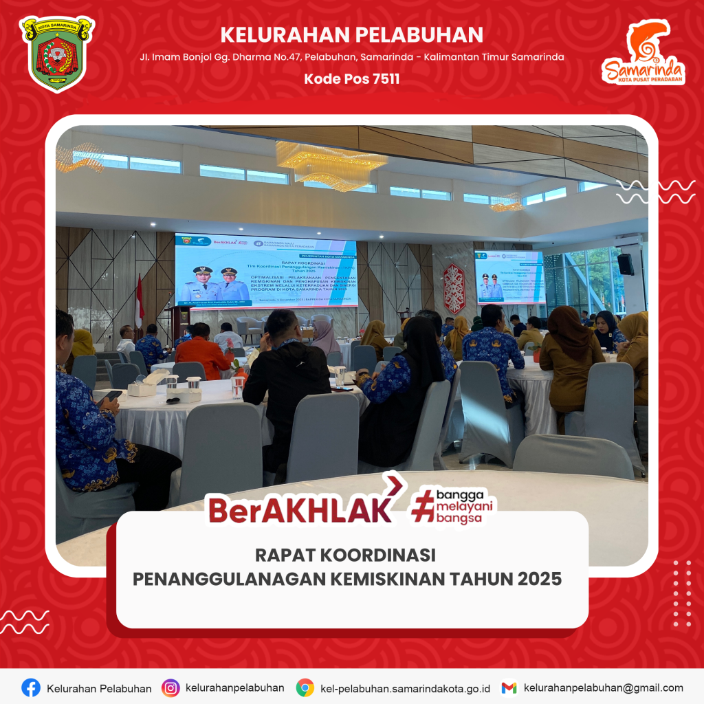 Lurah Pelabuhan hadir dalam Rapat Tim Koordinasi Penanggulangan Kemiskinan Kota Samarinda, sebagai bentuk komitmen kami dalam memperkuat sinergi dan strategi penanganan kemiskinan di tingkat kelurahan.