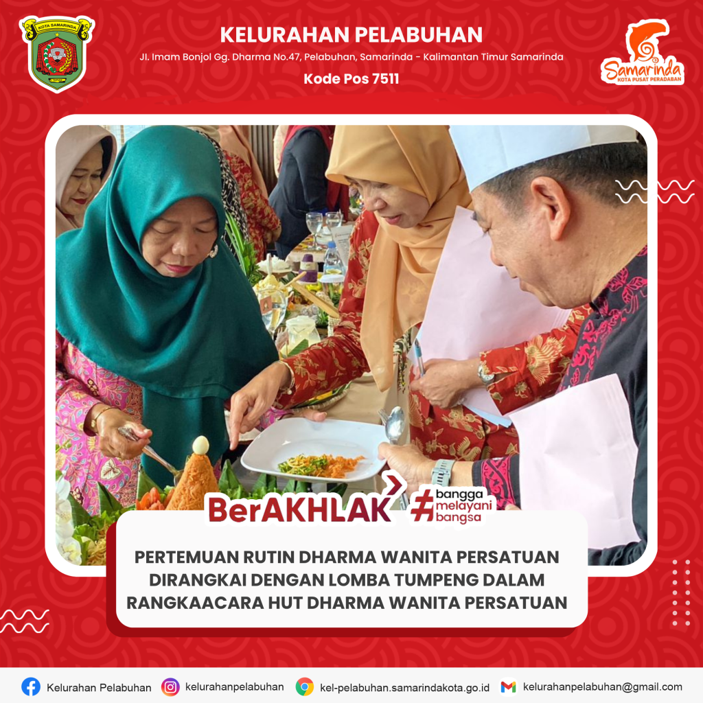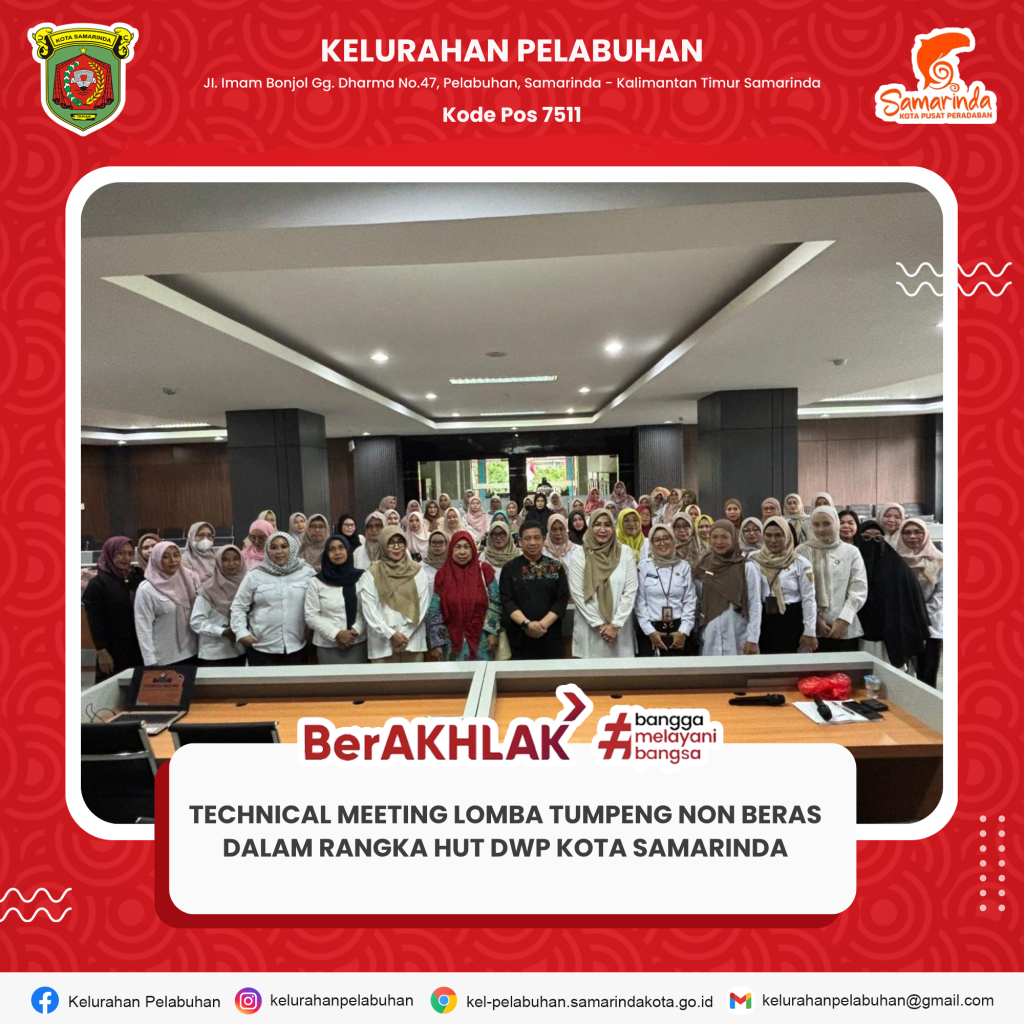 Technical Meeting Lomba Tumpeng Non Beras dalam rangka HUT Dharma Wanita Persatuan (DWP) Kota Samarinda November 12, 2025 Rabu, 12 November 2025 Mengikuti Technical Meeting Lomba Tumpeng Non Beras dalam rangka HUT Dharma Wanita Persatuan (DWP) Kota Samarinda